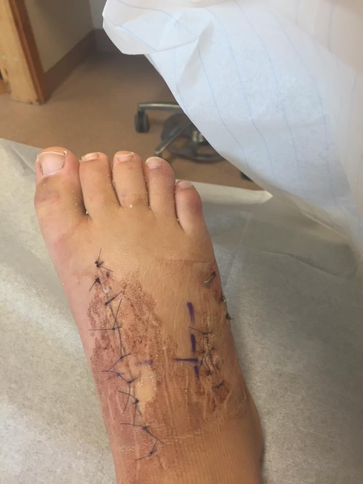 Stiften till höger på foten är 3 st och ca 7 cm långa, de drogs ut UTAN bedövning…