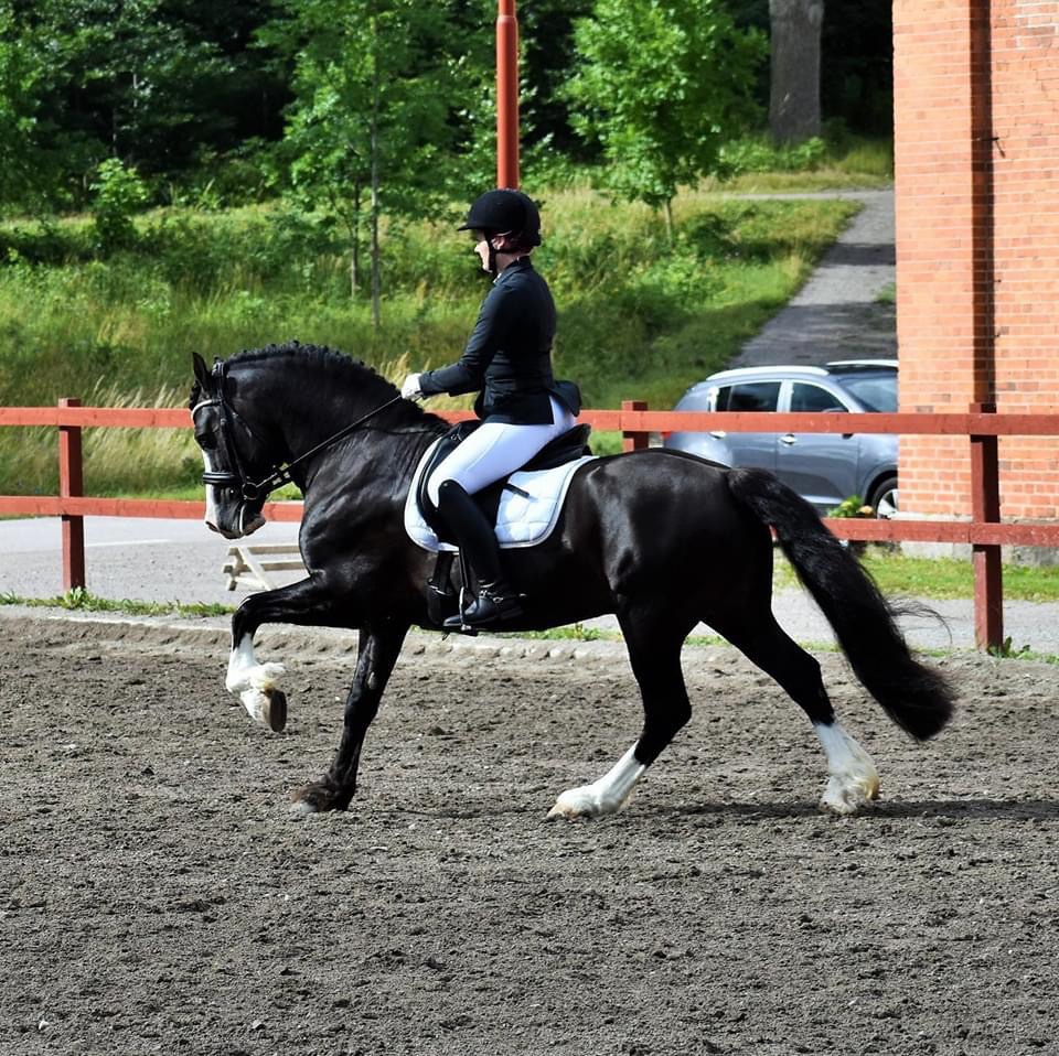 Han är D-ponny, fast tävlar numera mot storhästar. De har inte tävlat sen februari pga Covid-19. Idag går dom ut i dressyrklass LA:1 mot storhästar och vinner den på 67,8%!! Det blir deras sjunde raka seger🌟