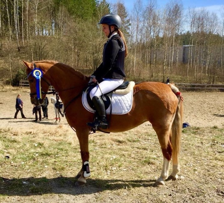 Hon har även tävlat dressyr på LB-nivå med bra resultat. Vunnit KM i både hoppning och dressyr.